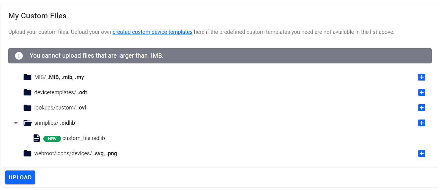 Click Upload to upload the custom device template files.