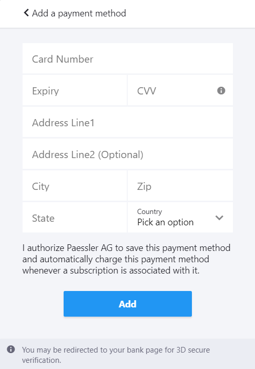 Click Change Subscription to select a new PRTG Hosted Monitor subscription and to open the payment checkout dialog. You see an overview of your order.