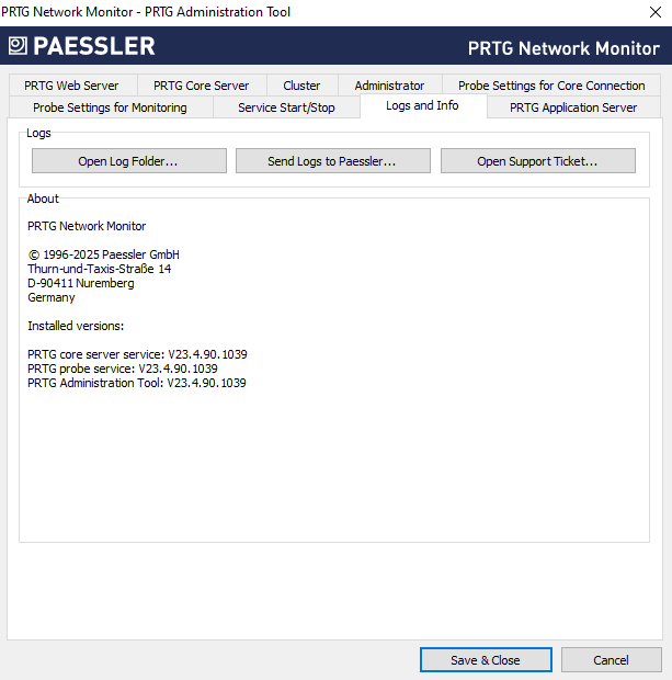 If you open a support ticket, the Paessler support team might ask you to send logs for further analysis.