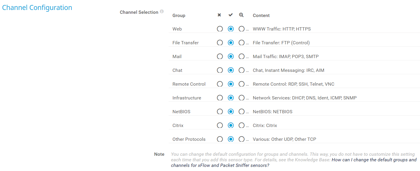 i_square_cyanYou can change the default configuration for groups and channels. For more information, see the Knowledge Base: How can I change the default groups and channels for flow and Packet Sniffer sensors?