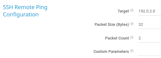 Enter the Domain Name System (DNS) name or IP address of the target device the ping is sent to. The sensor remotely connects to the parent device it is created on via SSH, then performs a ping request from this remote device to the target device or server. Enter a string.